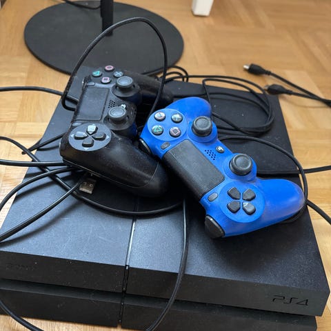 2 langatonta ohjainta, niille latauspiuhat. Mustalle ohjaimelle lataustelakka, konsoli ja piuhat. Toinen ohjain ostettu prismasta ovh 32e, tarvike, käy ps 4. Sillä pelattu myös. 500 gb. Suoraan käytöstä myyntiin, toisen tieltä pois. Nouto korso ja käteinen tai mb maksu. Hdmi ja virta piuhat mukana tulee. Hinnasta en tingi enempää!! Meillä ollut ulkoinen kova levy kiinni, lisä tilana. Voi ostaa erikseen jos haluaa.