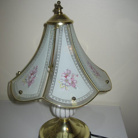Myyntiin kevyt pöytävalaisin suurella varjostimella, halkaisija 27.5cm. Varsi metallia ja pohja puu/kangas yhdistelmä. Kokonaiskorkeus lampulla n. 34cm.