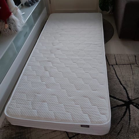 14 cm paksu vaahtomuovipatja 80x200 cm, jonka ytimessä on 11 cm polyeetterivaahtomuovia ja 3 cm painetta keventävää memory-vaahtomuovia, joka muotoutuu tarkasti kehon mukaan. Pestävä päällinen paksulla tikkauksella. Myydään yhdessä. Hinta 150 euroa/kpl Nouto tai kuljetus bensakuluja vastaan