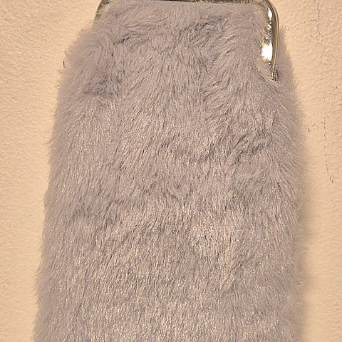 Musta pussukka meikkisiveltimille ym. Koteloiden reunoissa kaunis röyhelöreunus. Suljetaan vetoketjulla. Mitat pussukan ollessa avoinna noin 28 x 34 cm ja suljettuna noin 28 x 16 cm. Säädettävä vyö, jonka ansiosta pussin saa kiinnitettyä vyötärölle, naulakkoon tms. Materiaali luultavasti keinonahkaa.