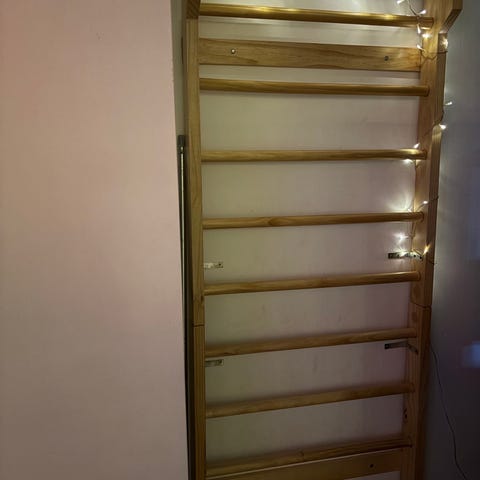 Melko hyväkuntoiset puolapuut, jos ei sitten pienet maalin lähtemiset yläosassa tee kuntoluokituksesta kohtalaista. Korkeus 230 cm, leveys 79,5 cm.