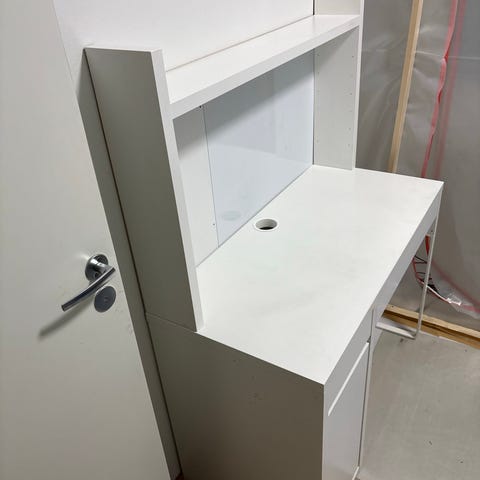 Myydään ikean micke merkkinen valkoinen työpöytä. Hyvä käytetty kunto, sisäseinässä käytönjälkiä (näkyy viimeisessä kuvassa)