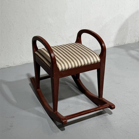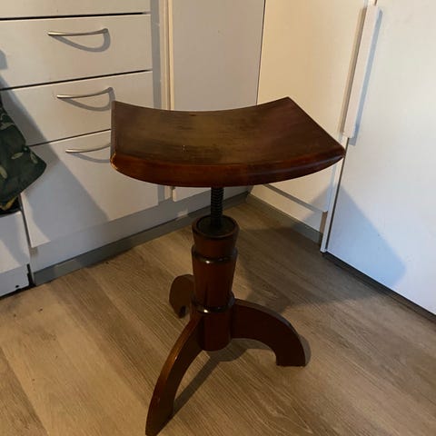 Tämä on yksinkertainen ja käytännöllinen talonpoikaistyylinen jakkara, joka on valmistettu puusta. Sen pyöreä istuinosa ja suorat jalat antavat sille perinteisen ilmeen, joka sopii monenlaisiin sisustuksiin. Jakkara on käytetty ja siinä on näkyvissä kulumaa ja naarmuja. Puu on hieman patinoitunut, mutta se lisää vain sen viehätystä. Jalat ovat tukevat, mutta niissä on pieniä kolhuja.