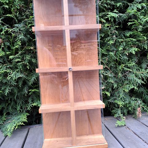Kompakti Asko vintage kirjahylly, jossa on lasiovi (1 kpl). Tumma puupinta antaa sille ajattoman ilmeen ja se sopii monenlaiseen sisustukseen. Hyllyssä on kaksi tasoa, jotka tarjoavat riittävästi säilytystilaa kirjoille tai koriste-esineille.Hyllyssä on näkyviä kulumajälkiä ja naarmuja, erityisesti reunoissa. Lasiovissa on pieniä naarmuja, mutta ne ovat ehjät. Yleisilmeeltään hylly on käytetty, mutta edelleen käyttökelpoinen.