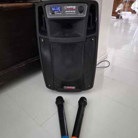 Vuokrataan Singtrix karaokelaite kahdelle mikrofonilla.