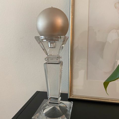 Kristallikynttilänjalka valmistettu kirkkaasta lasista. Kynttilänjalka on suorakulmainen ja siinä on neliönmuotoinen pohja. Sopii käytettäväksi koristeena tai valonlähteen tukena.