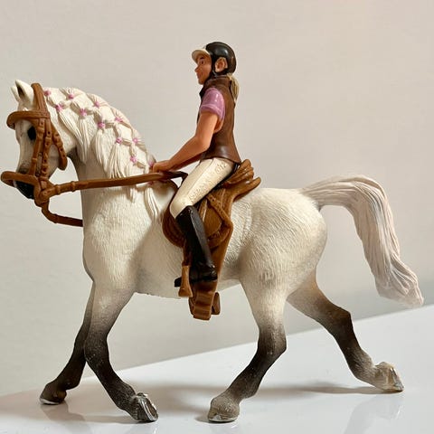 Schleich hevonen, Milla ratsastaja, satula ja suitset setti
