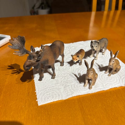 Myydään hyväkuntoinen Schleich Safari-setti, mukana kuvissa näkyvät osat/eläimet.