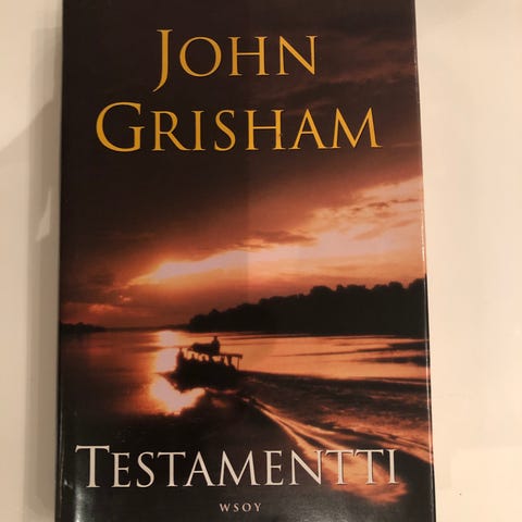 Myydään kirja. John Grisham: Testamentti. Paperikannessa teippiä ja vähän repeämää yläreunassa vasemmalla.
