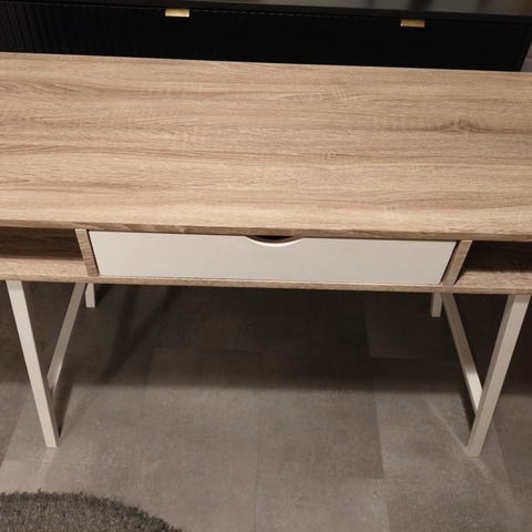 Ikean Micke työpöytä. Mustanruskea. Edessä vetolaatikko. Muutama hyvin pieni naarmu/kuluma, lähes huomaamattomia.
