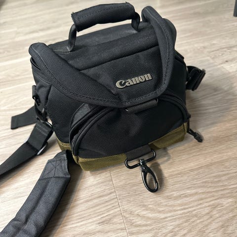 Täydellinen kunto, kuin uusi, kameralaukku kolmella ulkoisella taskulla. Sisään mahtuu kamera ja 3-4 obkektiivia. Sisustan lokerointia voi itse hieman muokata tarrakiinnitteisin "seinin". Nopea ja ilmainen toimitus Tampereen alueella!