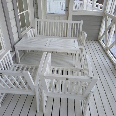 Jyskistä ostettu agermose ulkoryhmä. Pöytä ei ole enää mukana.
