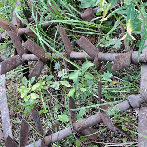Metallinen karhi, joka soveltuu maatalouskäyttöön. Vanha rullakarhi. Hevosvetoinen. Käy myös pihankoristeeksi.