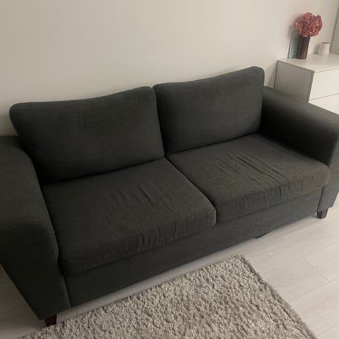 Luonnonvalkoinen sohva. Irroitettava ja vesipestävä päällyskangas.