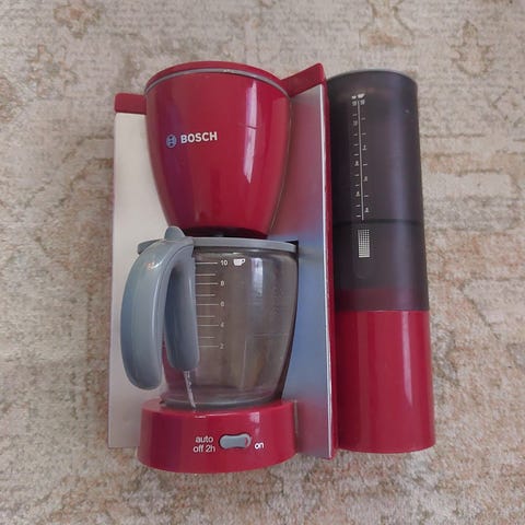 Bosch kahvinkeitin. 2 kapselia. Toimii paristoilla, vesisäiliö, pitää ääntä ja pumppaa vettä.