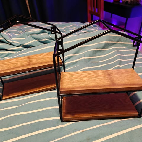 Puinen, tammensävyinen, siisti hyllykkö, jossa voi säilyttää esim. kuppeja, koriste-esineitä. Cd-levyt sopivat myös hyvin. (Huom! kuvien kupit ja levyt eivät sisälly hintaan.) Pientä kulumaa hyllykön pohjassa eli lattiaa vasten tulevassa osassa, ei siis näy, jos hyllykkö on pystyasennossa.