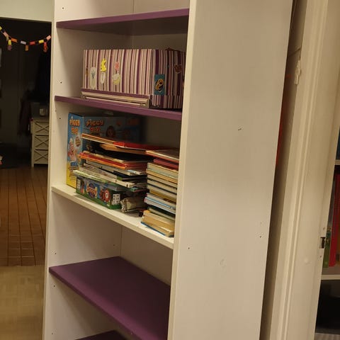 kirjahylly, purettu osiin, mukana musta ovellinen kaappi, vain nouto, maksu käteisellä.