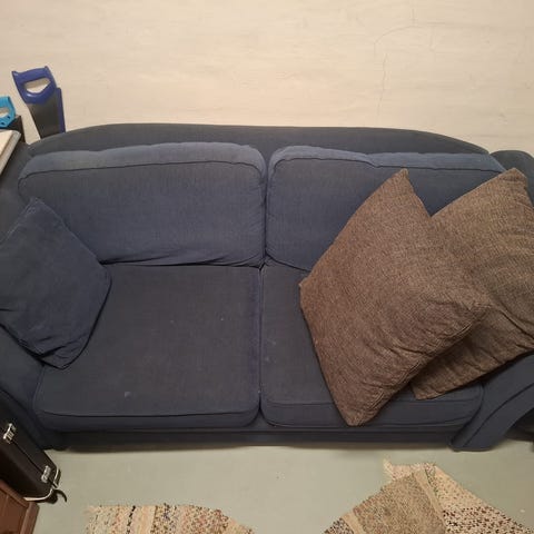 Annetaan kolmen istuttava sohva muuton takia. Omat kantajat mukaan.