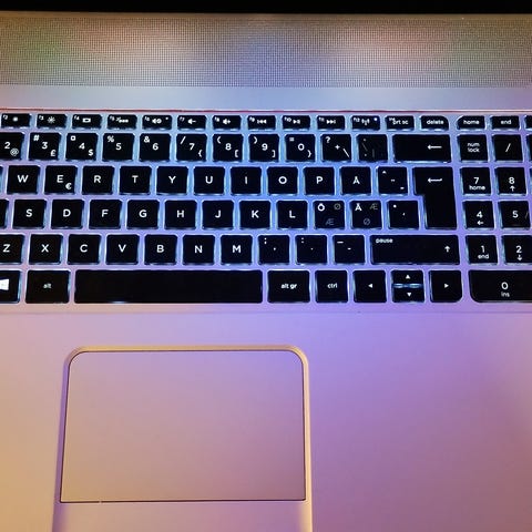 Täysikokoinen taustavalaistu näppäimistö, jossa oikealla puolella numeronäppäimistö.