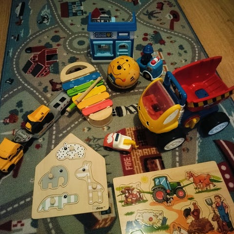 Taaperon lelusetti / käsilaukku, auto, magneettilelu, pop it ja ryhmä hau kassi