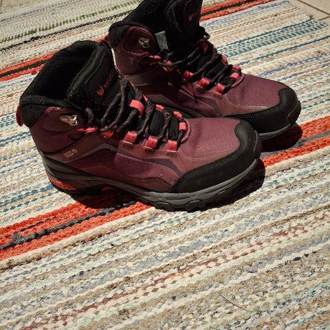 Naisten/tyttöjen uudet punaiset Outdoor lumikengät joissa karvavuori. Koko 38, sisämitta 24 cm.