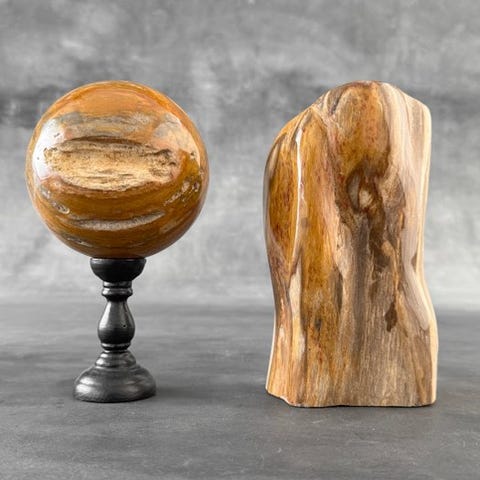 Upea pala fossiloitunutta puuta räätälöidyllä jalustalla.