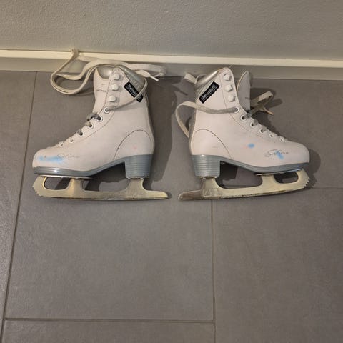 Valkoiset Sabrina luistimet, koko 27. Uudet, valkoiset nauhat luistimissa (pidemmät nauhat kuin alkuperäiset).