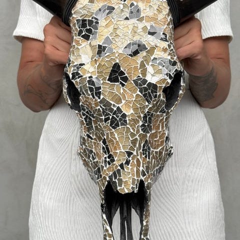 Ei lähtöhintaa - häikäisevä lehmäkallo lasimosaiikkipäällysteellä, kult