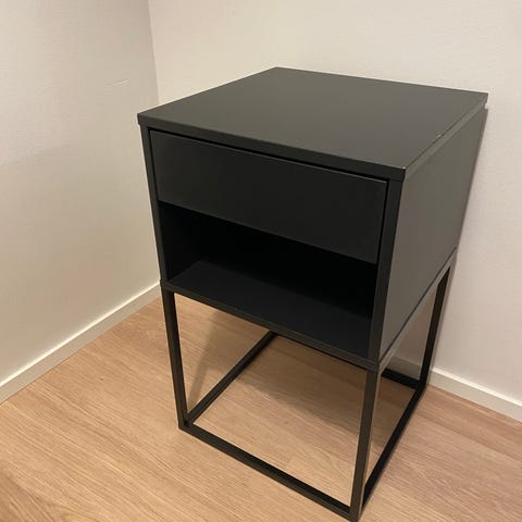 Ikea yöpöytä, pieni kaappi, Aspelund sarjaa. Pöytälevyssä kolhuja, katso kuvat, muuten ehjä.
