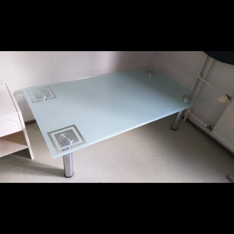 Lasinen/rottinkinen pöytä joka pienellä ehostuksella vielä käyttökelpoinen. Pois muuton tieltä.