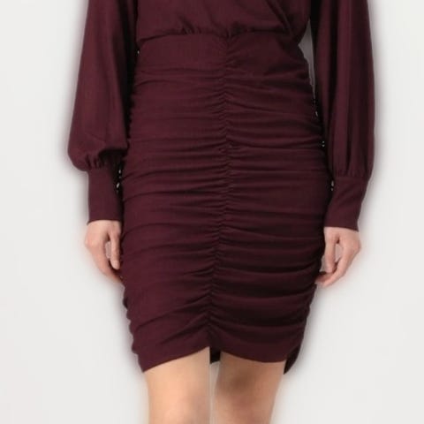 Vyötäröllä joustava kuminauha. Alaosa enemmän vartalonmyötäistä mallia.