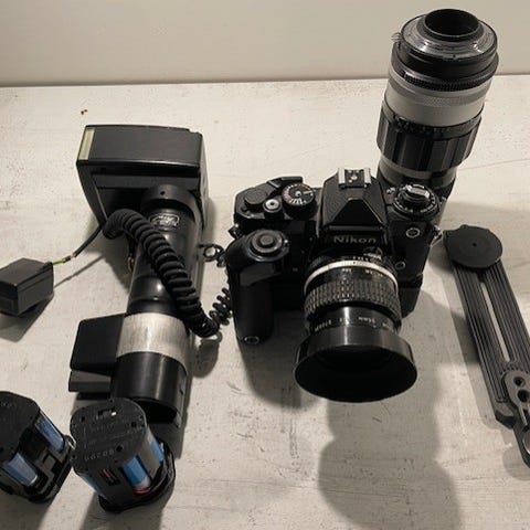 Myyn hyväkuntoisen filmikamerapaketin. Kaikki laitteet toimivat. Kameraan pitää lisätä paristo.