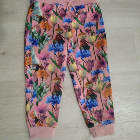 Muumiaiheiset verryttelyhousut. Käytetyt, kuvan mukaiset, siistit ja ehjät seuraavalle.