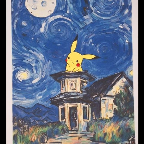 Æ:n monokromaattinen triptyikki uudelleenkuvittelee Pikachun vaeltavaksi samuraiksi — hiljaisuuden vartijaksi lumisateen alla. Jokainen paneeli tallentaa hetken hiljaisuudesta tehtävän ja unen välillä, jossa soturin henki säilyy aikakausien yli.