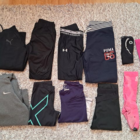 Treenisetti: uusi treenipyyhe vaintaskulla, Puma treenipaita, trikoot XS/S