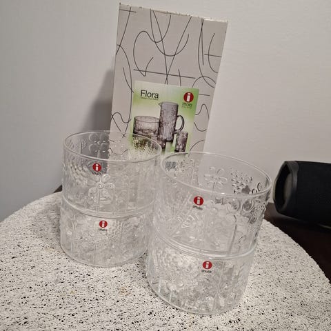 Iittalan Flora 2L kannu ja 4 juomalasia.Nouto ja käteismaksu.