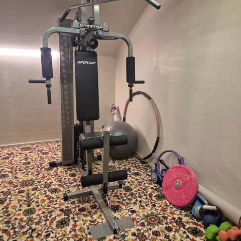Linkin kotikuntosali myynnissä. Lisäksi painonnostopenkki + levypainot noin 75-80kg ja levykäsipainotangot. Nämä ei kuvissa mukana.