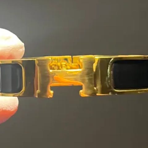 Hermès-rannekorut ovat tunnettuja trendikkäistä suunnittelustaan, upeasta käsityötaidostaan ja ajattomasta eleganssistaan. Laajasti suosittuja, ne ovat vaikuttavia mutta hienostuneita, täydellisesti ilmentäen luksusta ja arvokkuutta. Esimerkiksi Hermès Jumbo -rannekoru käytiin läpi metallianalyysin ammattilaisten mittauslaitteilla varmistaakseen sen aitouden. Tulokset osoittivat, että rannekorun metalli sisälsi noin 11 % kultaa, mikä vahvisti sen aitouden. Se on todellinen luksustuote, joka on valmistettu parhaista materiaaleista.