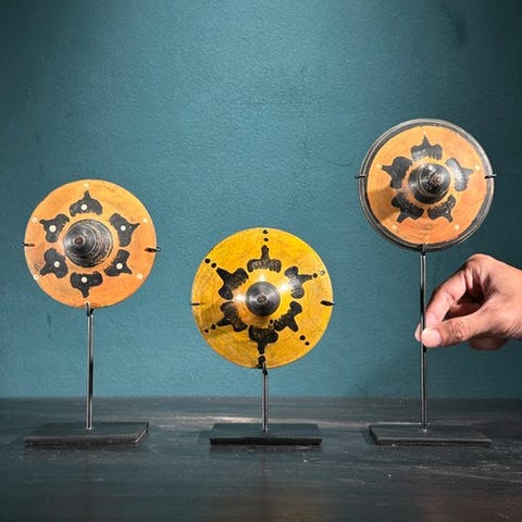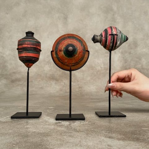 Kolmen puisen pyörivän lelun setti Lombokilta.