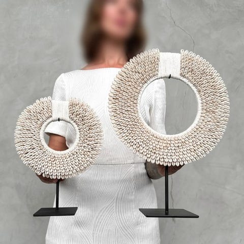 Koriste-esine (2) - Stunning Pair XL of caramel coloured tolai necklaces on