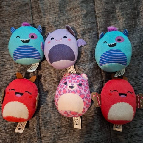 Myydään 7 squishmallowsia, muutaman vuoden vanhoja. Kaikki ovat saman kokoisia eli 19cm. 5 euroa kappale, ovh 12 euroa. Posti tai nouto Myllykoskelta.