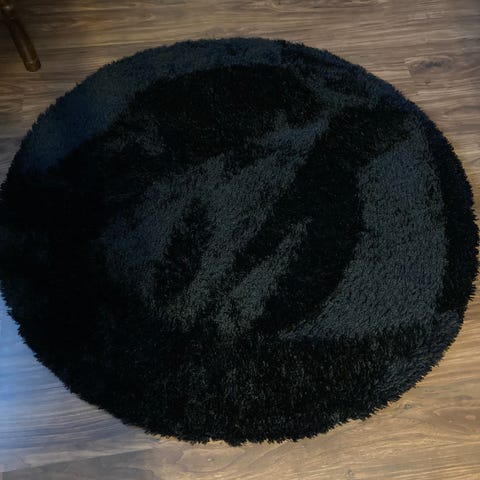 Vaalea, luonnonvalkoinen, pyöreä ja korkeanukkainen matto. 130cm halkaisija.
