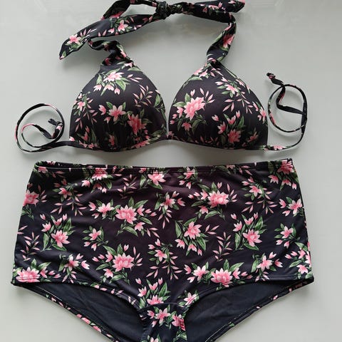 Käyttämätön kukkakuvioinen, brasilialainen uima-asu/ bikinit. Kokomerkintä 42.