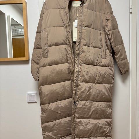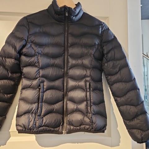 Joulupukki toi väärän koon ja mallin, joten tästä uusi treenitakki jollekin. Väri ei ole ihan puhtaan valkoinen. Koko S. Nailon, elastaani.
