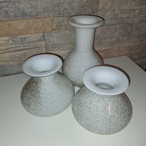 Design lasimaljakoita kaksi kappaletta. Virolaista, tyylikästä käsin tehtyä designia. Molemmissa tekijän signeeraus. Täysin ehjiä, virheettömiä ja käyttämättömiä. Upeat, yksilölliset ja siistit maljakot, niin koristeeksi, kuin myös käyttöesineeksi.