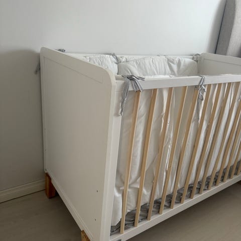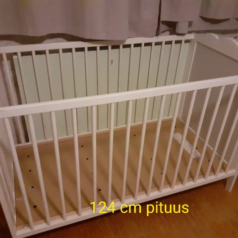 IKEA pinnasänky ja hoitopöytä etsivät uutta kotia. Molemmista löytyy laatikot joten säilytystilaa on runsaasti. Kuvassa ei itse hoitotasoa näy mutta se on tallessa ja hyväkuntoinen. Sängyn etulaidan saa irti.