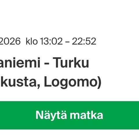 Opiskelija junalippu Rovaniemi>Tampere>Turku