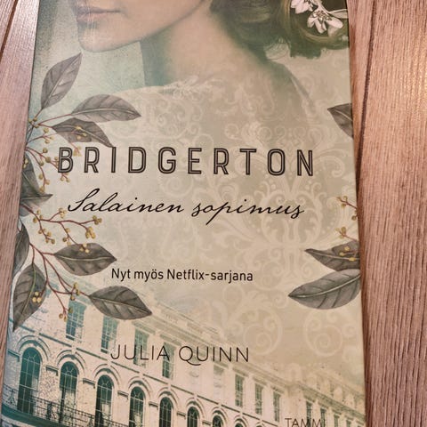 Bridgerton -sarjaan perustuva kirja ”Salainen Sopimus”. Pehmeäkantinen suomenkielinen kirja.