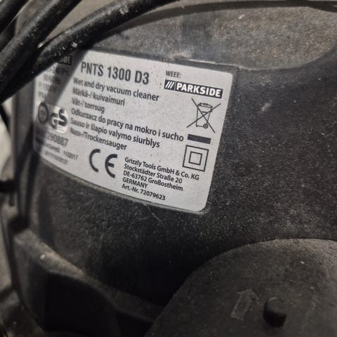 Toimiva märkä/kuivaimuri. 1 rengas puuttuu