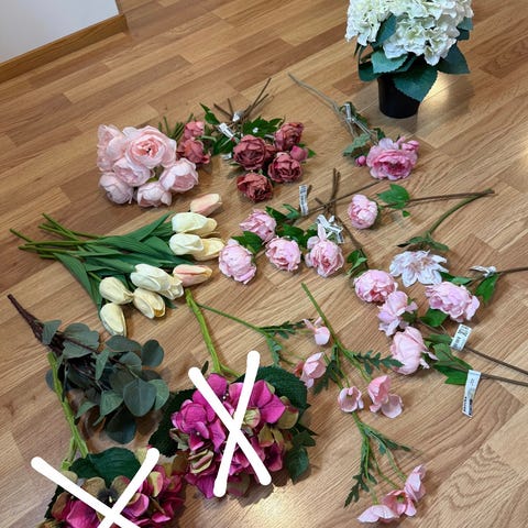 Kasa kahta erilaista tekoköynnöstä. Toiset Ikeasta ja toiset Bauhausista tms. Nouto Niittykummusta